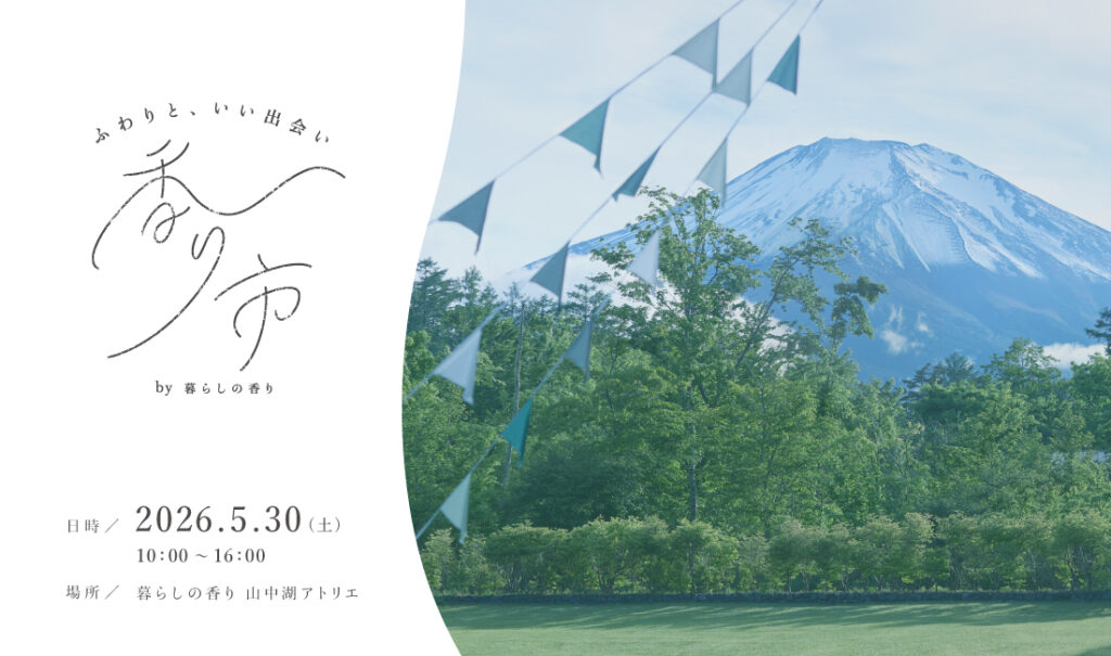 今年も暮らしの香り山中湖アトリエに広がるガーデンにて開催いたします。今回も近隣地域から多様な出店者様にお集りいただく予定です。出店者様情報は順次、香り市のEVENTページ内でお知らせしてまいります。