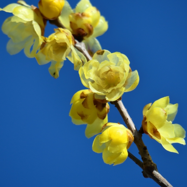 【ろうばい】年の始まりに、蝋細工のような艶のある花をつける。澄んだ空に映える、小さな黄色い花々。あたたかみのある上品な香りが漂う。